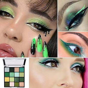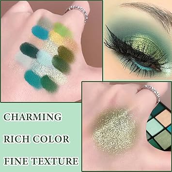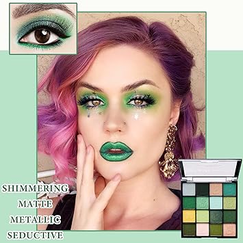 16 Color Green Shimmer Matte Eyeshadow Palette, Highly Pigmented, Long Lasting, Waterproof