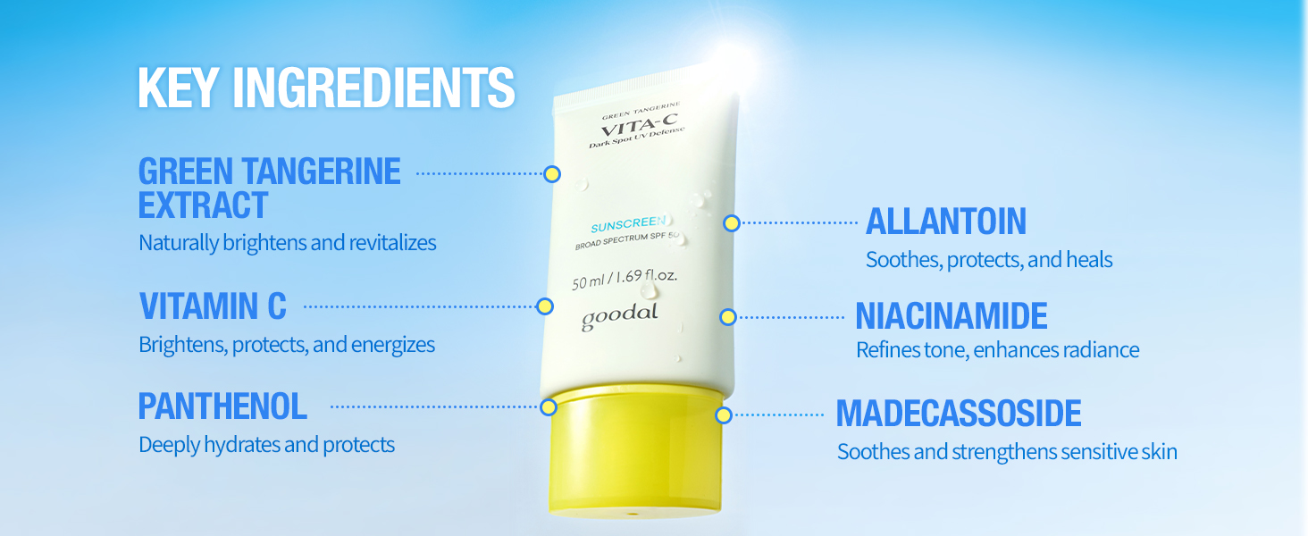 Goodal Green Tangerine Vita-C Dark Spot UV Defense Sunscreen SPF 50, Daily Skin Care Korean for Face, Broad spectrum, No White Cast (1.69 fl oz / 50ml)