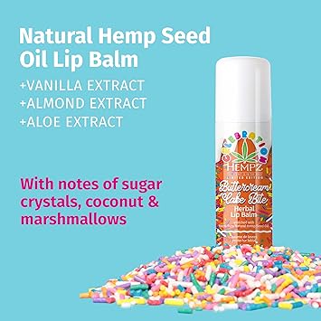 HEMPZ Natural Lip Balm - Buttercream Cake Hemp Seed Oil, Shea Butter, Coconut & Avocado Oil with Vanilla, Sugarcane, Sweet Almond Moisturizing Care Hydrating Repair 0.5 oz Stick