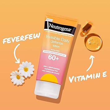 Neutrogena Invisible Daily Sunscreen Lotion, Broad Spectrum SPF 60+, Oxybenzone-Free & Water-Resistant, Sun or Environmental Aggressor Protection, Antioxidant, 3 Fl Oz (Pack of 1)