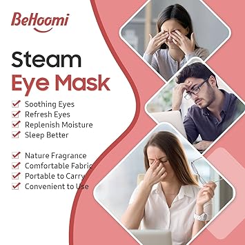 • Self Heating Eye Mask: 2 Steps to use BeHoomi steam eye mask, just open and put on, no need microwave or electric, an easier way to relax your eyes. Moist warm eye compress heated eye mask provides comfort for your eyes after a long day of working.