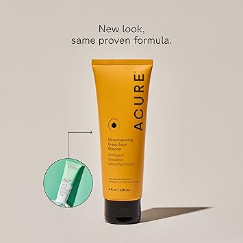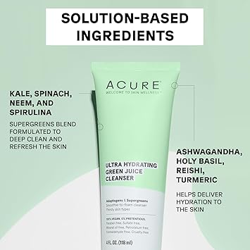 Acure Ultra Hydrating Green Juice Face Cleanser - Day & Night Facial Cleansing Foam, 4 fl oz