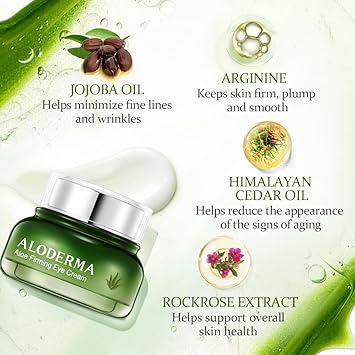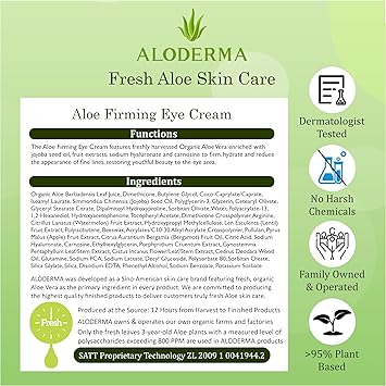 Aloderma Aloe Firming Eye Cream Made with 70% Organic Vera - Natural Daily Hydrating Jojoba, Hyaluronic Acid, & Reduce Signs of Aging, Fine Lines Wrinkles, 25g