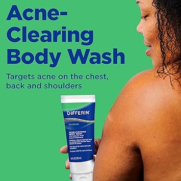 Differin Acne Body Wash by the makers of Gel, Treatment Cleanser with Salicylic Acid, Cream to Lather Formula for Back, Chest, Shoulders, 10 Oz.