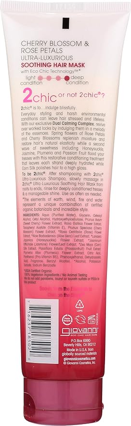 Giovanni 2chic Ultra Luxurious Soothing Hair Mask, Cherry Blossom & Rose Petals, 5.1 Oz