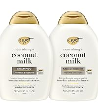 OGX Nourishing + Coconut Milk Shampoo & Conditioner Set, Hydrating Restoring, Moisturizes for Soft Hair After the First Use, Sulfate-Free Surfactants, 2 Items, x 13 fl. Oz