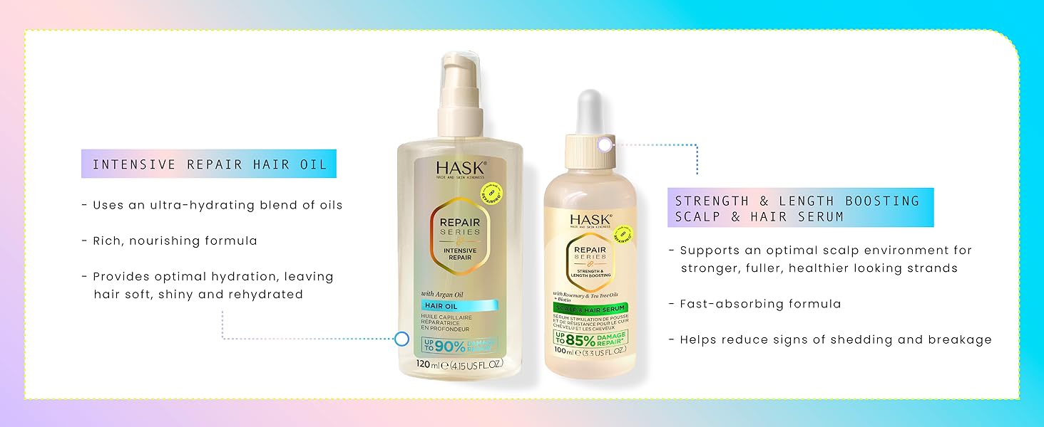 HASK Intensive Repair Hair Oil & Strength Length Boosting Scalp and Serum - Repairs Damage, Strengthens, Adds Shine Moisture, Prevents Breakage, Sulfate-Free, Cruelty-Free