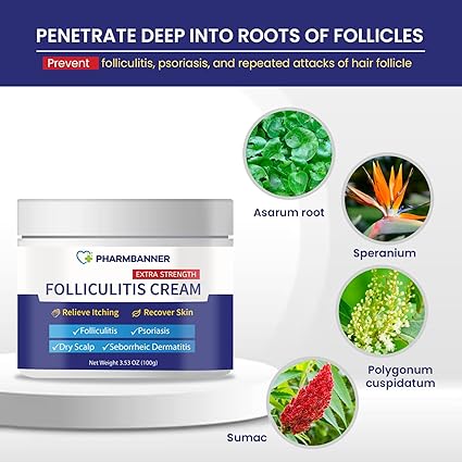 Folliculitis Treatment Cream - Herbal Formula for Scalp, Face & Body Soothes Itchy Skin Moisturizing Barrier Repair 100g