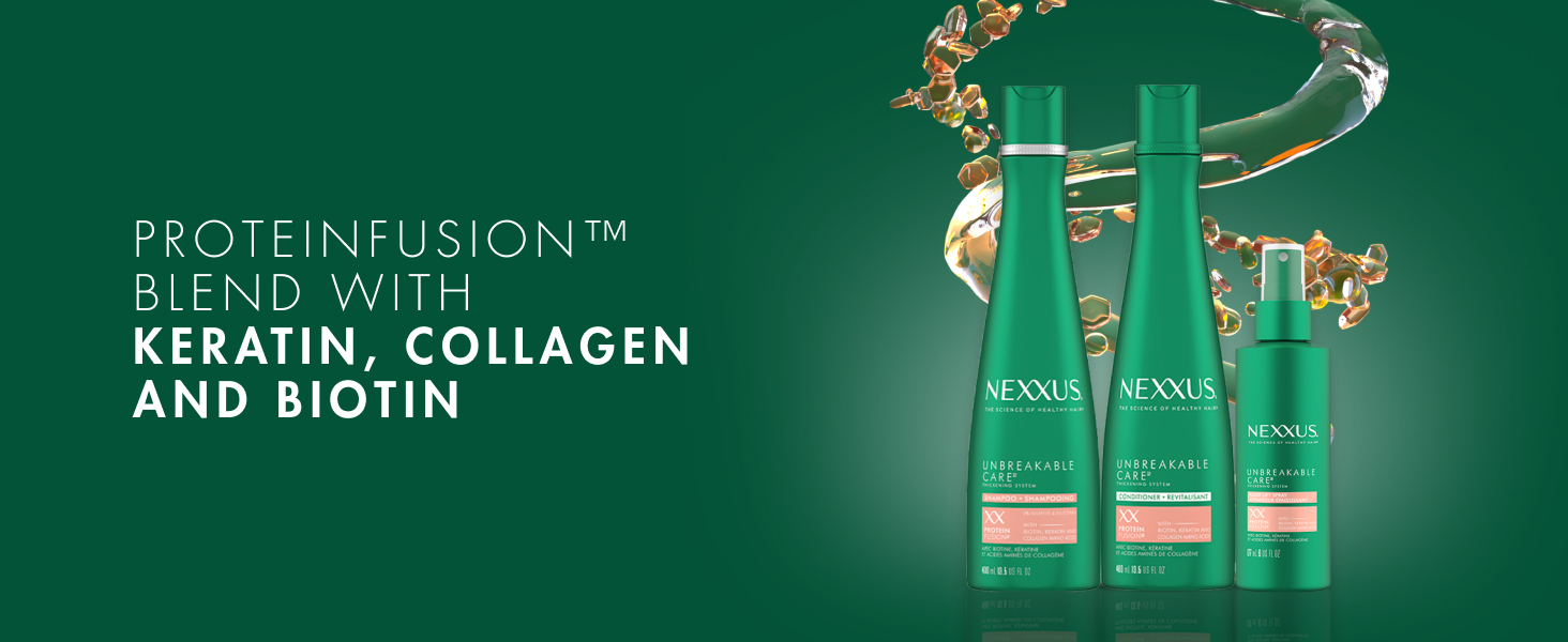 Nexxus Unbreakable Care Anti-Breakage Shampoo With Keratin, Collagen, Biotin For Fine And Thin Hair Sulfate Free 13.5 oz
