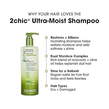 Giovanni 2Chic Ultra-Moist Avocado & Olive Oil Shampoo and Conditioner Set - Moisture Natural Growth for Men Women with Moisturizing Aloe Vera, Sulfate Free 24 Fl Oz (Set of 2)
