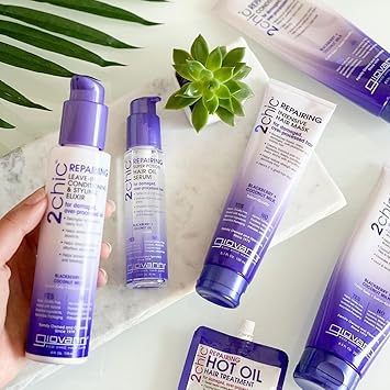 GIOVANNI 2chic Ultra Shine Leave-In Conditioning & Styling Elixir - Hair Serum for All Types, Tsubaki Seed Oil White Tea, Detangles, Smooths Conditions, Tames Frizz 4 oz