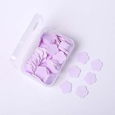 100Pcs Purple Mini Portable Travel Soap Paper Sheets,Flower Shape Disposable Flakes, Hand Wash Cleaning Washing Toiletry Sheets Foot & Care