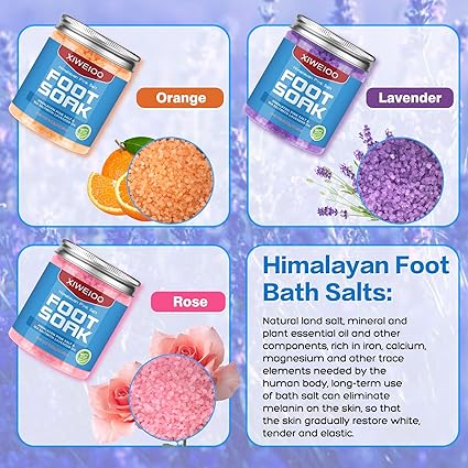 • Fresh fragrance, a variety of flavor options, so that the mood is also brilliant and colorful, XIWEIOO Himalayan foot bath salts using the highest quality mineral salts.