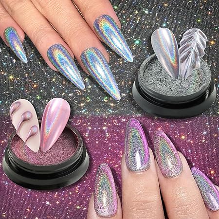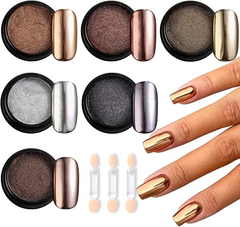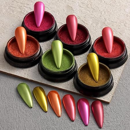- 【Aurora Effect】The 6pcs powder will show different aurora light effect on your nails,like gold,pink,purple,green,blue and white.You need use NO WIPE TOP COAT to achieve aurora effect before brushing the powder on.