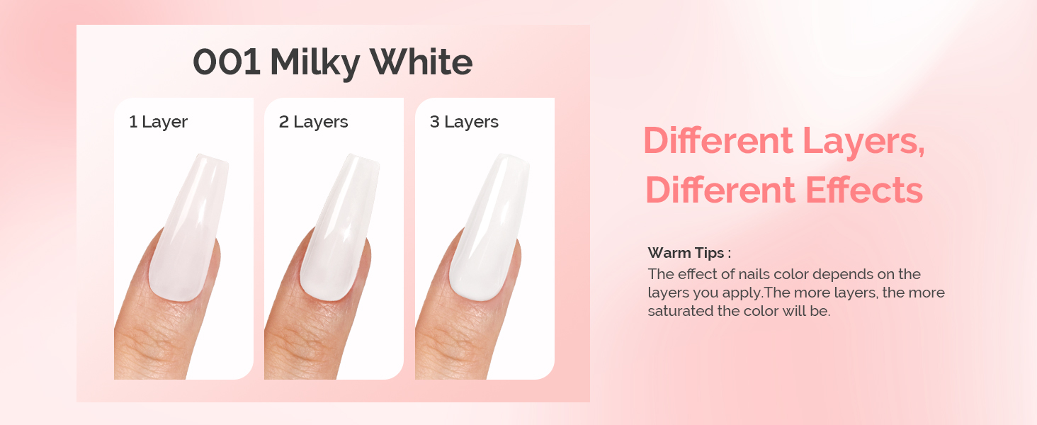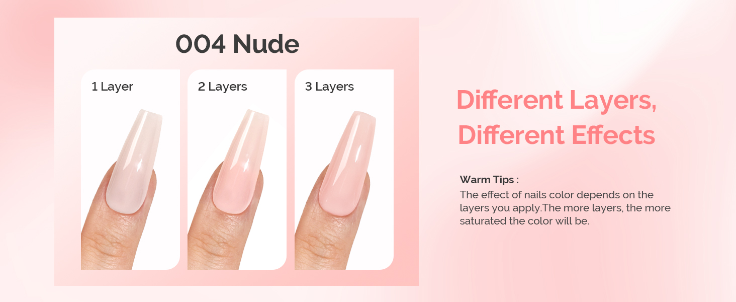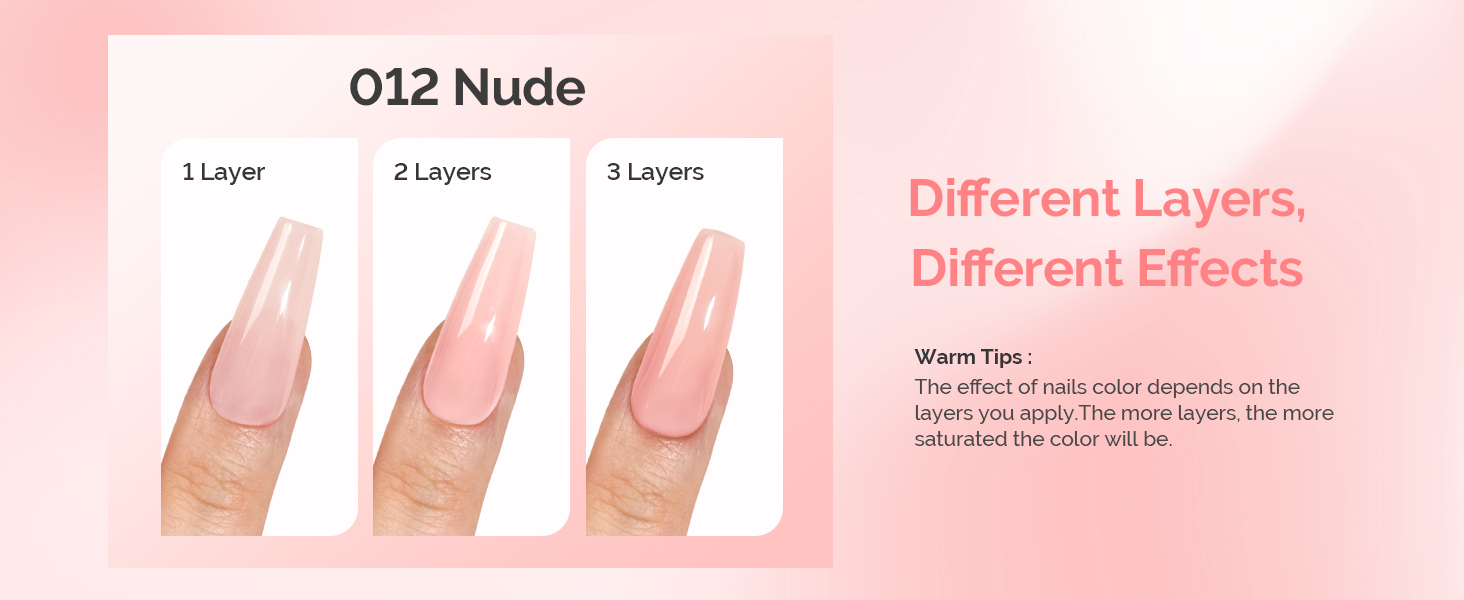 - QUICK & EASY APPLIACTION:In 3 easy steps can enhanced beautiful nails:brush on, level, and cure.Its light self-leveling properties along with built-in brush assist in an effortless application on the nail, help you create length, thickness or add strength to the nail you want.