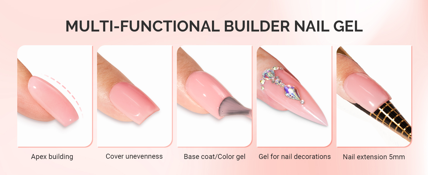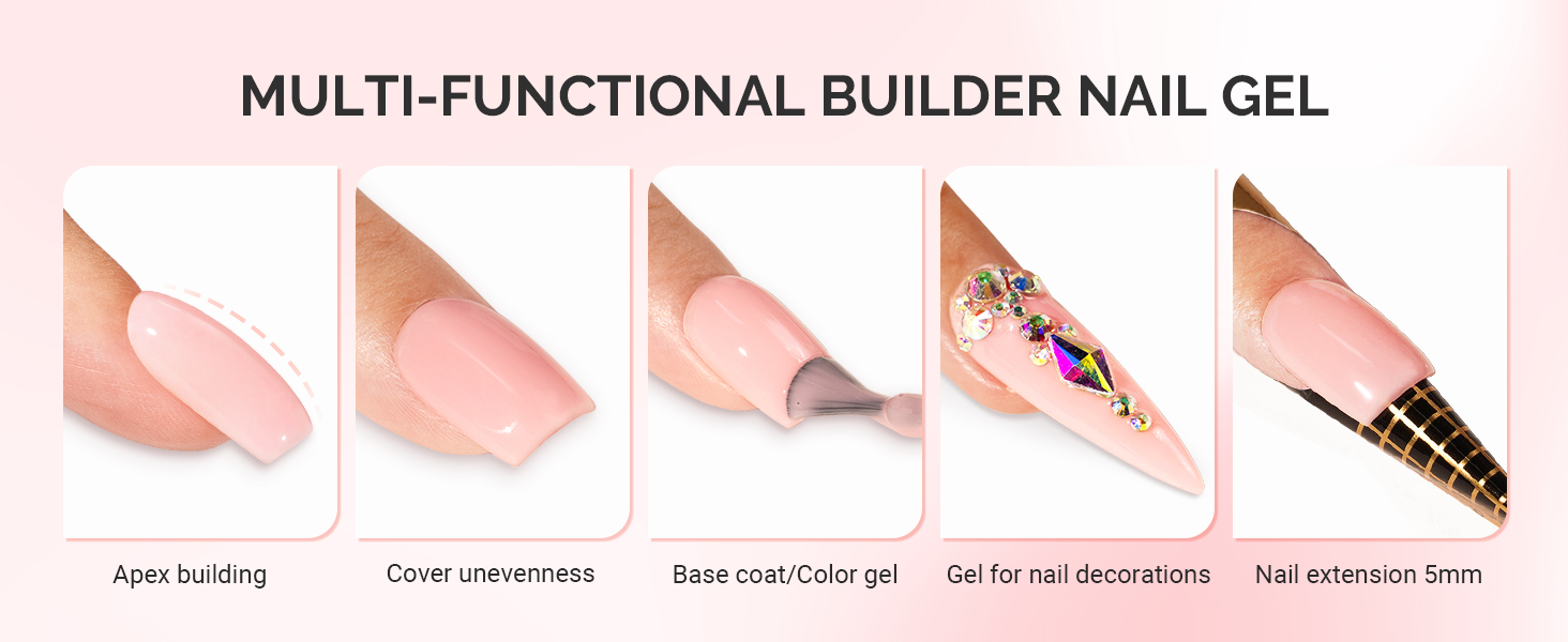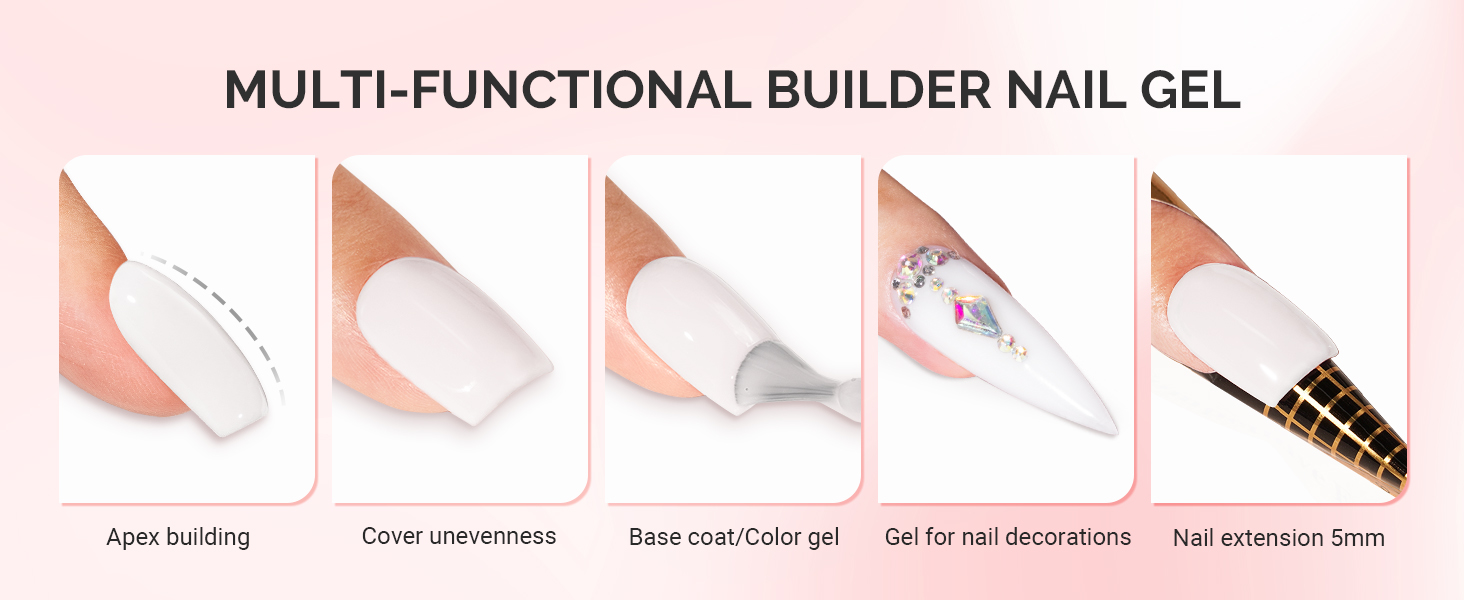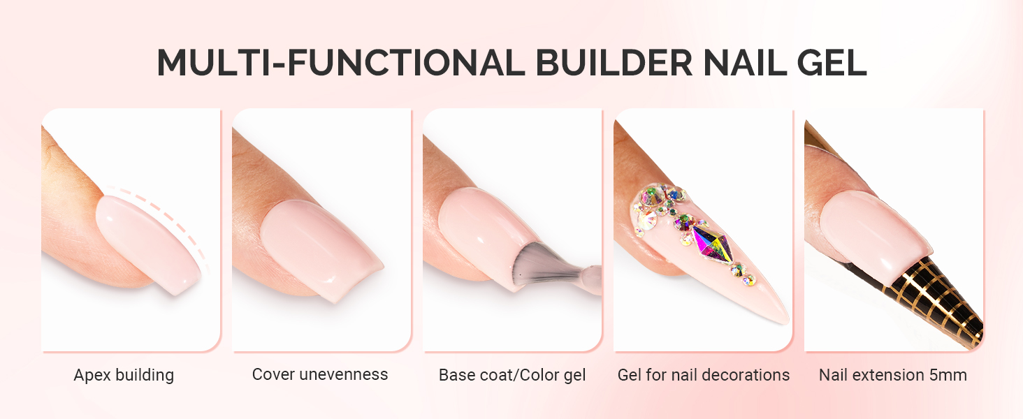 - MelodySusie versatile BUILDER THICKENING NAIL GEL: Designed with innovative formula, it's perfect for many amazing uses including as thickening overlay, building apex, extending length, shaping nail, to attach false nail tips / gems / jewels and as a base gel/a color gel.Perfect for a variety of your nail needs and creating your own nail art!