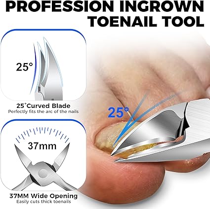 - Upgraded 45° Slanted Nail Clippers: Our new and improved ingrown nail clippers are larger, with a wider opening and sharper blades. The specially designed 45° curvature fits the natural shape of your nails, allowing precise trimming of ingrown toenails, sharp corners, cuticles, and peeling skin. This ensures a smooth, efficient trimming experience while minimizing the risk of injury
