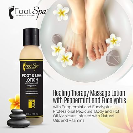 Foot SPA - Healing Therapy Massage Lotion, 4 Oz with Peppermint and Eucalyptus Professional Pedicure, Body Hot Oil Manicure, Infused Natural Oils Vitamins