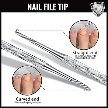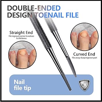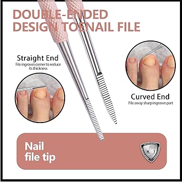 - Double Head Design Toenail File: Different from traditional toenail file which is straight on both ends, our nail file is designed with one straight end for file ingrown corner to reduce its thickness and one curved end for filing away sharp ingrown part