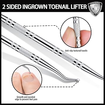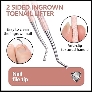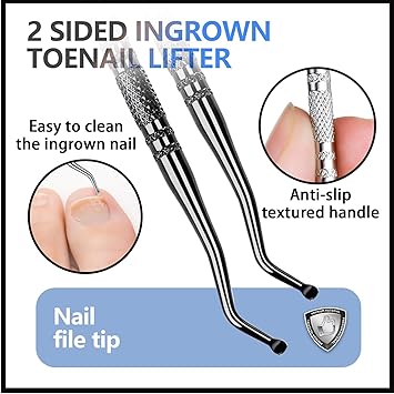 - 2 Sided Ingrown Toenail Lifter: Its principal use is to scrape and cut off tissues from under and over the nail plate. 2 sided toenail lifter with smooth and rounded edge to prevent foot pain, helps tend to painful ingrown toenails