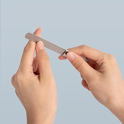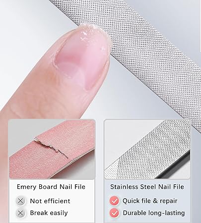 Medium Grit Metal Nail File with Travel Leather Case, Rough for Acrylic Nails Stainless Steel Fingernail Men Women, Heavy Duty Thick Toenails, Mini Filer