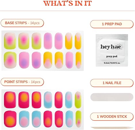 Semi Cured Gel Nail Strips | No LED Lamp Needed Spring, Marble, Pink Easy Apply & Remove, Salon Quality Includes 28 Strips, 1 Prep Pads, File Wooden Stick - Hey, So Sigma