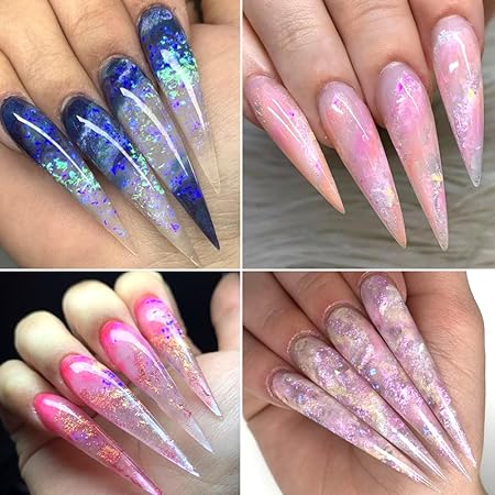 - 【Wide Application】The holographic sparkle glitter dust can be applied on UV gel nails, acrylic nails, natural nails or false nail tips. It is also suitable for clothes, slime, phone cases, gift-wrap, invitations, and epoxy resin.