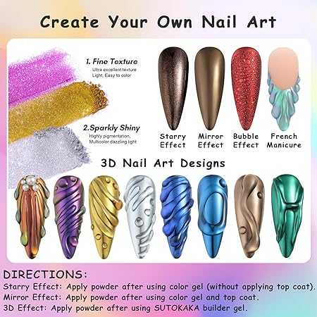 - 【Ultra-Fine Texture】 Our reflective glitter powder is made with high-quality ingredients, odorless and non-toxic, friendly to your nails. The ultra-fine powder has a soft texture, just a little bit can easily create and achieve an amazing sparkling effect.