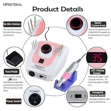 Pro Efile Nail Drill Machine 35,000rpm with LED Digital Display for Acrylic Nails Professional Manicure Remove Gel Polish Extension Gift Women Home and Salon Use