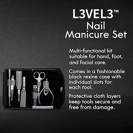L3 - Level 3 Nail Manicure Set 7 Pcs Multi Functional Kit in a Carrying Case