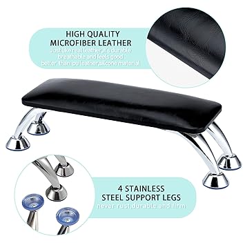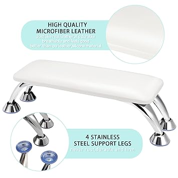 - Portable and Durable: the hand rest for nails tech is detachable, and these four legs are made of stainless steel, with silicone rubber on the end of them, which prevents them from slipping, and they can also withstand heavier weight, so it is more practical and long lasting, compared with other ordinary ones in the market; It's a must have for most professional nail tech