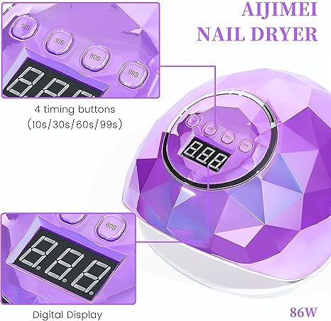 - Nail Lamp: AIJIMEI nail gel lamp, a smart nail lamp, is a professional nail tool with an automatic switch sensor. There are 4 timing buttons (10s, 30s, 60s, 99s) for your choice.
