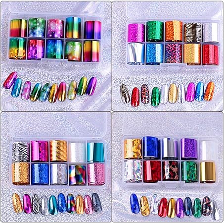 40 Rolls Starry Sky Nail Foil Adhesive Transfer Sticker Tips, EBANKU Art Stickers Tips Wraps Glitters Acrylic DIY Decoration Kit(4 Boxes)