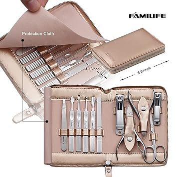 FAMILIFE Manicure Set Professional Kit 11 in 1 Gift for Women and Men Nail Clippers 13PCS Cutter Grooming Pedicure Steel