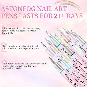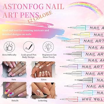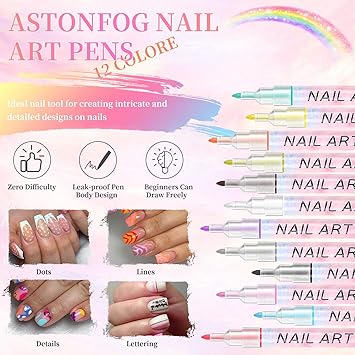 • How to Use: ASTONFOG Nail Art Pen Set is an excellent choice for nail art enthusiasts and professional manicurists who want to enhance their designs. With their fine tips and smooth paint flow, they can complete precise and intricate design work with ease. Shake up and down to mix the ink evenly before use, then press the pen tip vertically several times until the ink flows out
