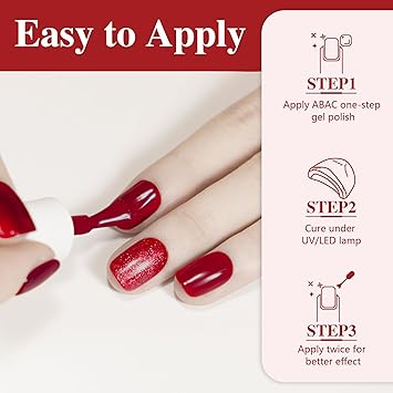 One-step Hema Free Gel Nail Polish 15ml Full-size Cherry Red Color Soak Off LED Set Art Starter Manicure Salon DIY Design Decoration at Home Lamp Needed