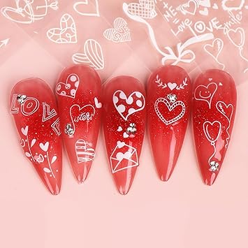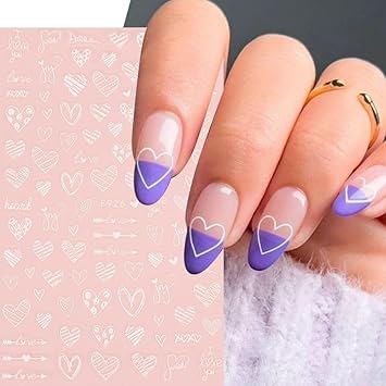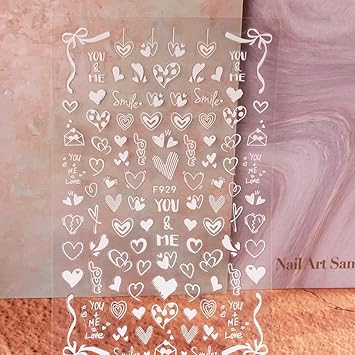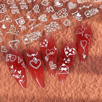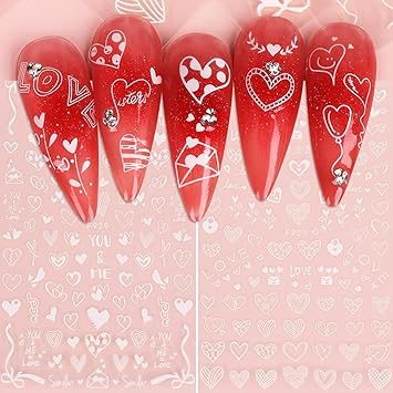 Heart Nail Art Stickers 3D White Designs Self Adhesive Decals 4 Sheets Cute Love Bow Design Kawaii Valentines for DIY Manicure Decoration