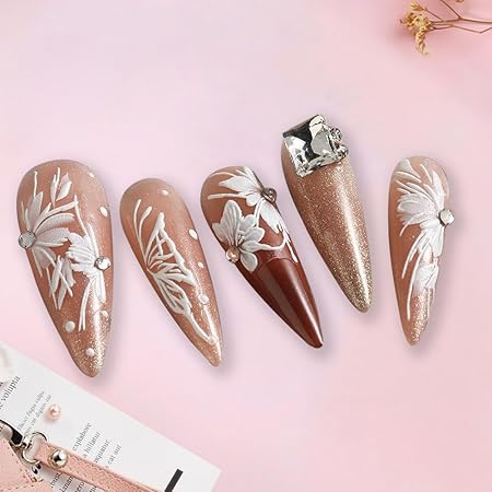 ③ 3D botanical leaf nail art stickers for nail designs, available in 3 colors.