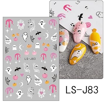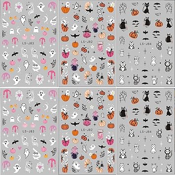 Halloween Nail Art Stickers 3D Decals Self Adhesive Cute Pumpkin Ghost Bat Cat Spider Web Design for Women DIY Decoration Supplies