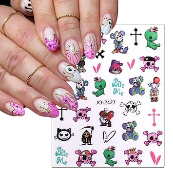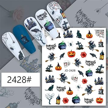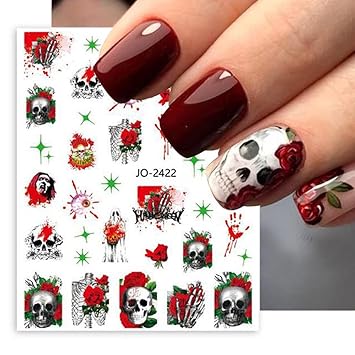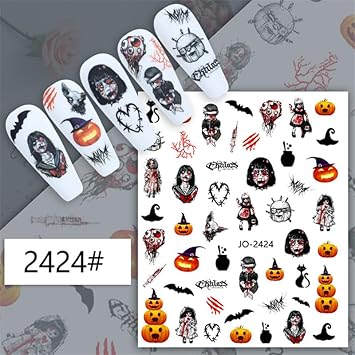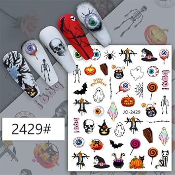 Halloween Nail Art Stickers Decals, 3D Self-Adhesive Decals Supplies Horror Eyes Hand Skull Designs Pumpkin for Women Girls DIY Decoration 6 Sheets