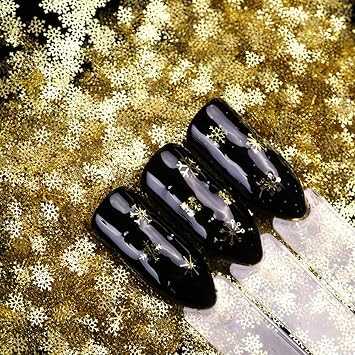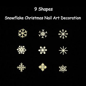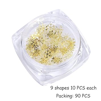 Christmas Nail Sequins Stickers Flakes Art Accessories Manicure 3D Decals Snowflake Metal Paillettes Glitter Gold Design for Xmas Party Fingernail Toenail Decor(90PCS, 1 Bottle)