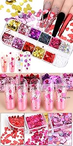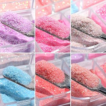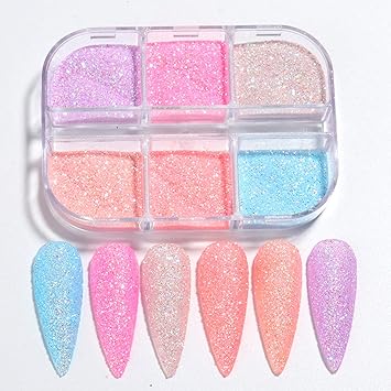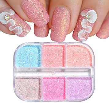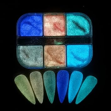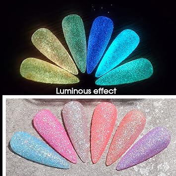 Fluorescent Nail Pigment Powder, Luminous Glitter Flakes Holographic Glow Liquid Art Dust Design Decoration 3D Nails Supplies for Gel Polish DIY Sequins Accessories (6 Colors)