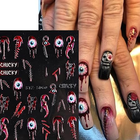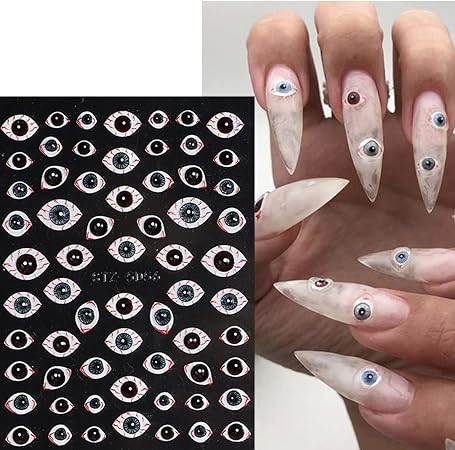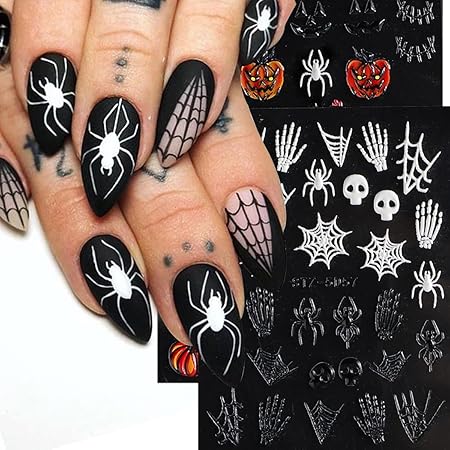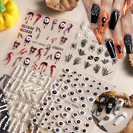 Halloween Nail Stickers 5D Self Adhesive Realistic Eyes Bone Spider Embossed Sliders Gel Polish Engraved Decal Skull Ghost Pumpkin Bat Art Decoration Supplies 5 Sheets