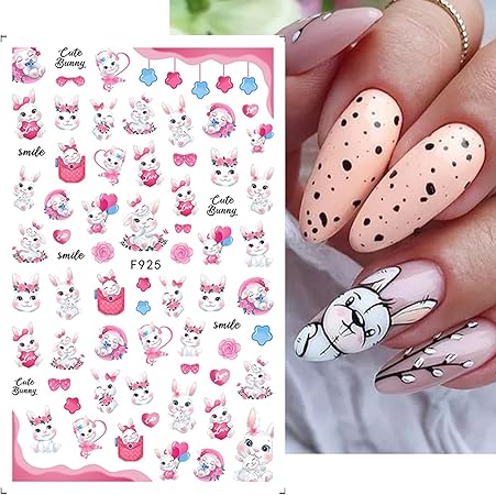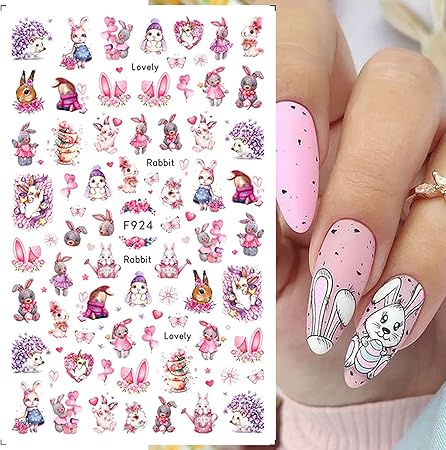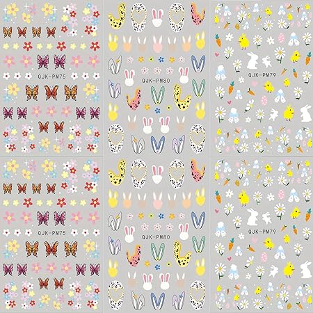 A delightful addition to your nail art collection. This set includes 6 sheets of Spring-themed 3D self-adhesive nail decals, featuring charming designs such as cute bunnies, flowers, pink bows, rabbits, and hedgehogs. Perfect for DIY nail art enthusiasts, these nail decorations are easy to apply and instantly elevate your manicure.