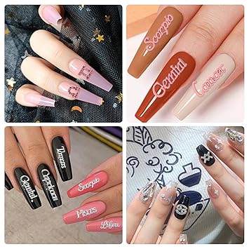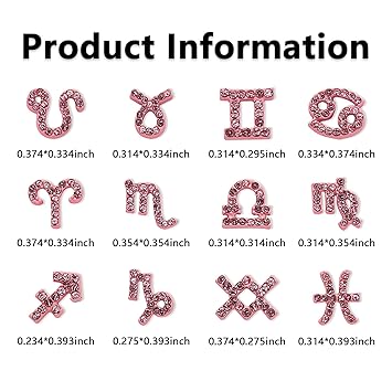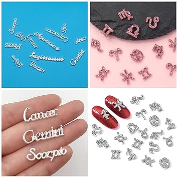 48 Pieces Pink and Silver Alloy Zodiac Nail Charms Signs Studs Constellation Words for Nails Twelve Set Women Girls Art Decoration