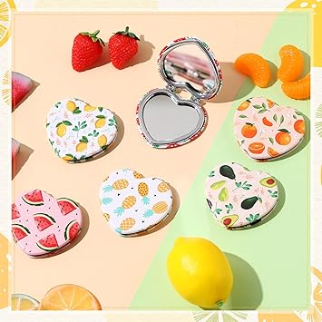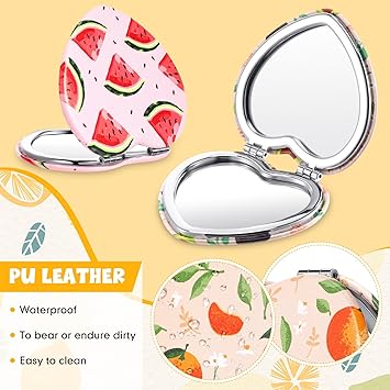 Vicenpal 6 Pcs Compact Mirrors Small Pocket Fruit Design Mini Magnifying Portable Makeup PU Leather Double Sided Mirror for Women Girls Mother Kids Gift(Love Style)