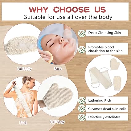 3 Pack Natural Loofah Sponge Exfoliating Body Scrubber Set Shower Bath Glove Long Washcloth Towels Luffa Pads Mitts for Men and Women Back Deep Clean Remove Dead Skin