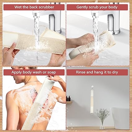 3 Pack Natural Loofah Sponge Exfoliating Body Scrubber Set Long Exfoliating Washcloth Towels Luffa Sponge Pads Mitts Shower Bath Glove for Men and Women Body Back Deep Clean Remove Dead Skin