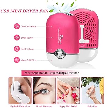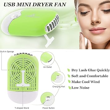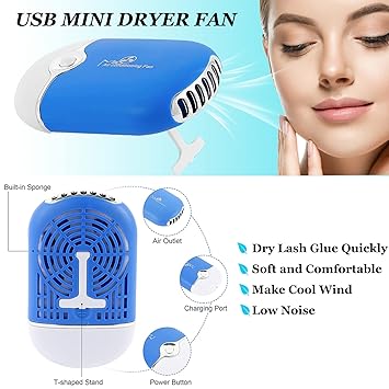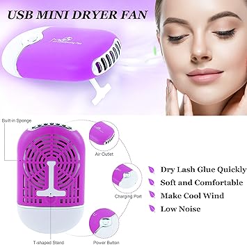 - 【Mini Eyelash Fan Dryer】The USB lash fan dryer is blade-less, built in rechargeable and cooling system to blow out cold air to dry eyelash glue quickly. T-shaped bracket on the back can make it stand stable on table, lightweight and small size is convenient and easy to carry and store.You can carry it in your bag for cooling daily use.