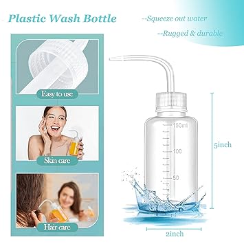 - 【150ml Plastic Wash Bottle】Our this washing squeeze bottle is of good flexibility and elastic, light weight, reliable and not easy to deform and break. It can be applied to store makeup remover or moisturizing water, which is convenient for your makeup. Portable and lightweight mini bottle, is very easy to carry and use.